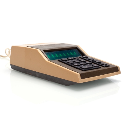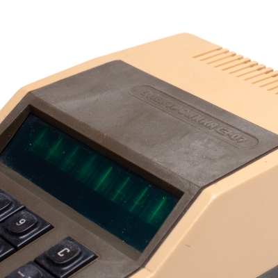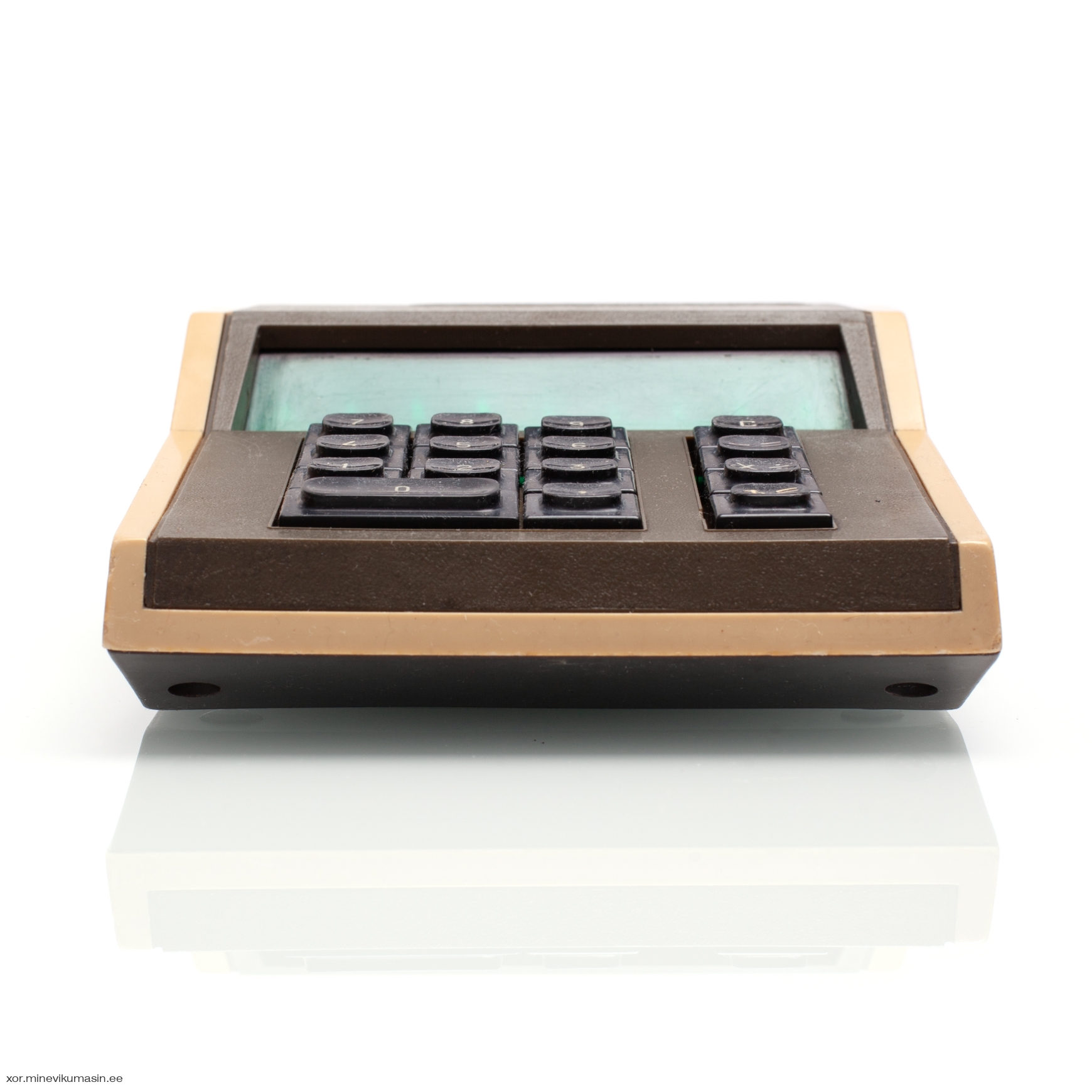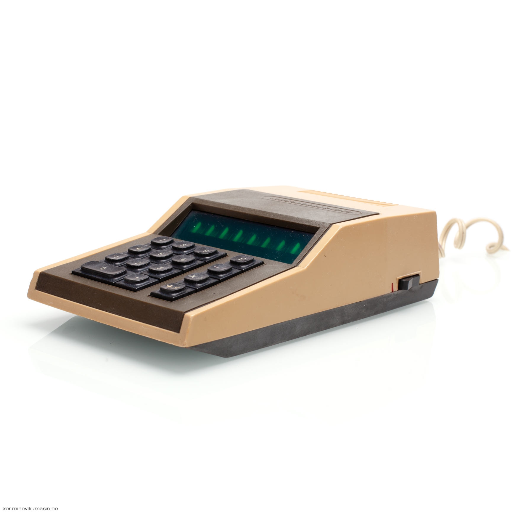 The Elektronika S3-07 features a 8-digit 7-segment Vacuum Fluorescent Display (VFD). Its logic is based on four p-MOS large-scale integrated circuits (LSI) - early versions of К145/К1ЖГ45-series chips without any markings except green dots (1-4 dots). Four individual chips are for memory and synchronization, arithmetics, input and control. For the display-tubes the calculator uses К2ЛН641 small-scale integrated circuits (SSI). All chips and various other components are dated to 1976.