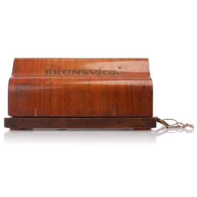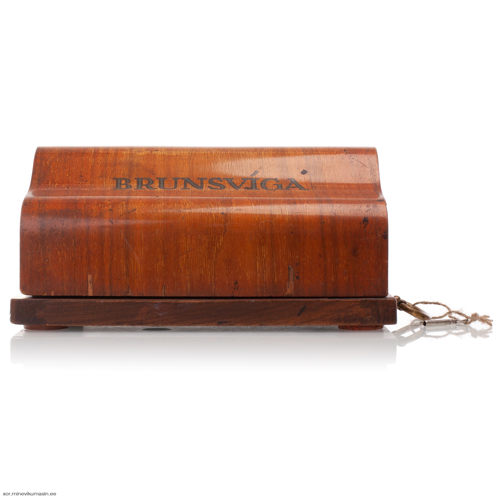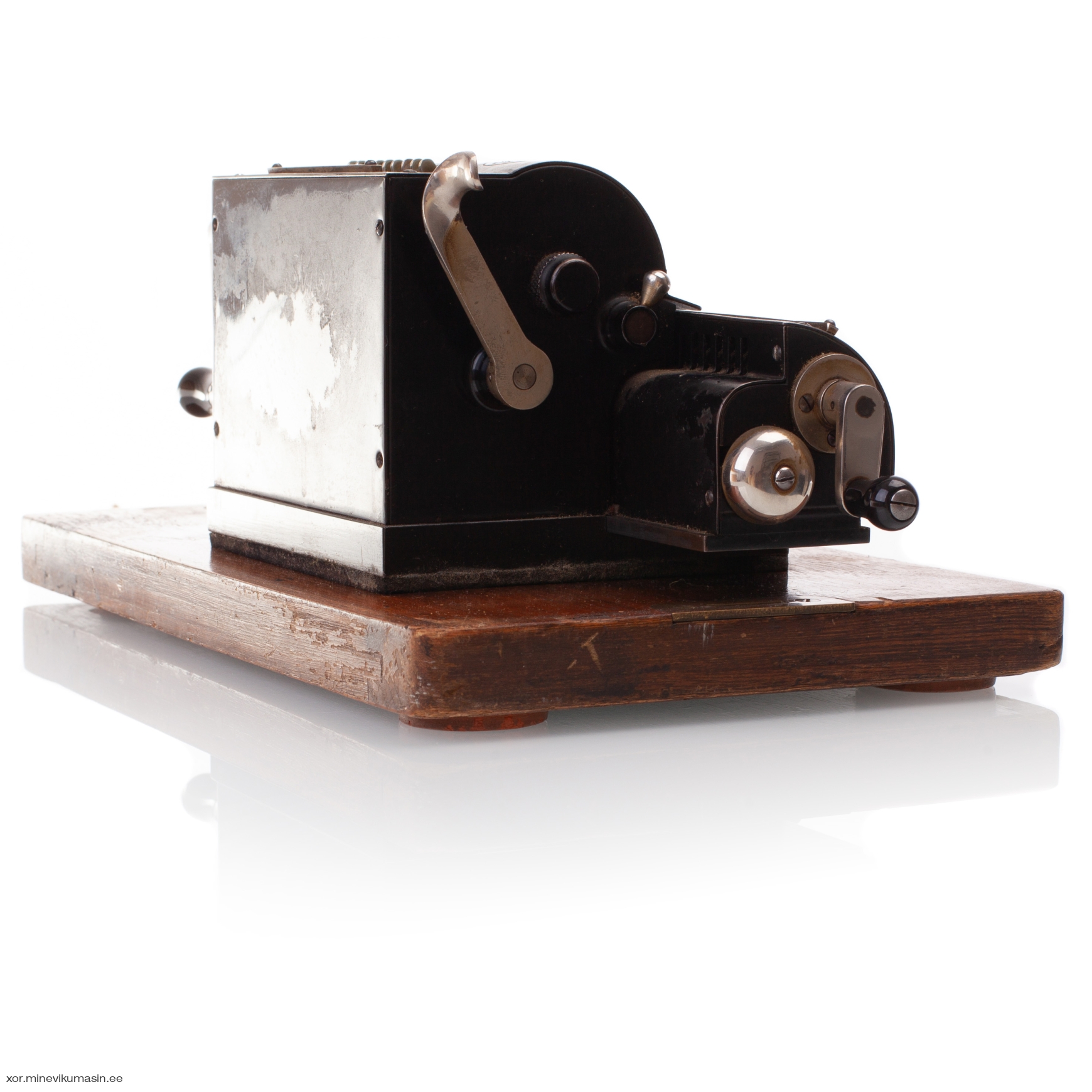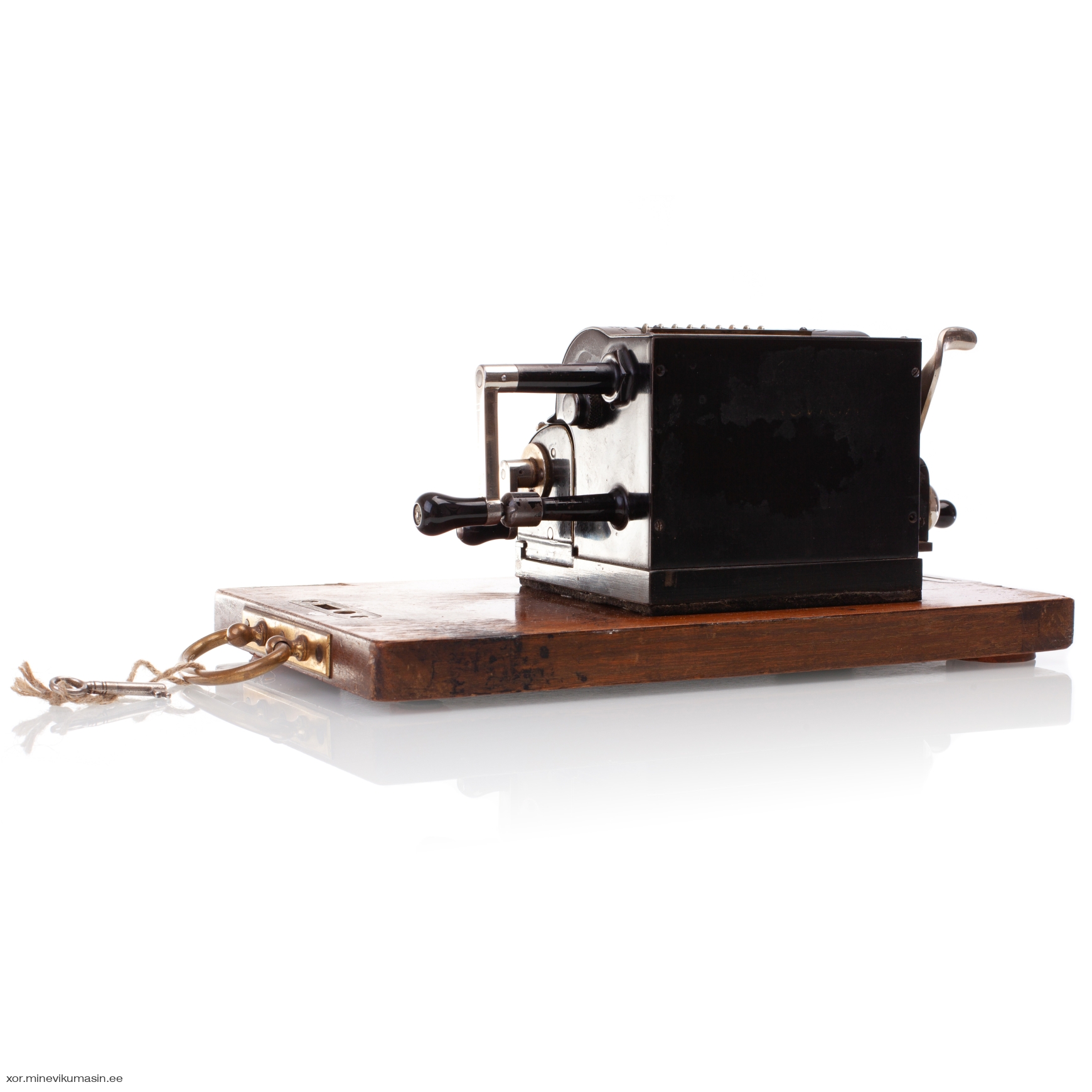 The Brunsviga M II is a pinwheel Odhner-type mechanical calculating machine, manufactured in 1926 by Grimme, Natalis & Co. AG in Braunschweig, Germany. In 1892, one of Germany's top sewing-machine manufacturers, Grimme and Natalis, bought Odhner's patent for the pinwheel-type calculating machine. The patent included distribution rights in Germany, Belgium, and Switzerland. The calculating machines were launched under the brand name Brunsviga — the Latin name for Brunswick — in reference to the city of Braunschweig. As early as 1908, Brunsviga introduced its first Model M calculating machine to the market. In 1922, the local competitor Rema, which had been producing calculators since 1919, was acquired. Thereafter, two new calculator models — previously Rema II and Rema III — went to production and were rebranded as Brunsviga M II and M III. In 1927, the company's name was changed to Brunsviga Maschinenwerke Grimme, Natalis & Co. AG, and later to Brunsviga Maschinenwerke AG. This machine has a history in Finland and found its place here in this collection in 2018. Registers: 9 x 8 x 13 Weight: 5,1kg Dimensions: 15 x 28 x 14 cm | ||||