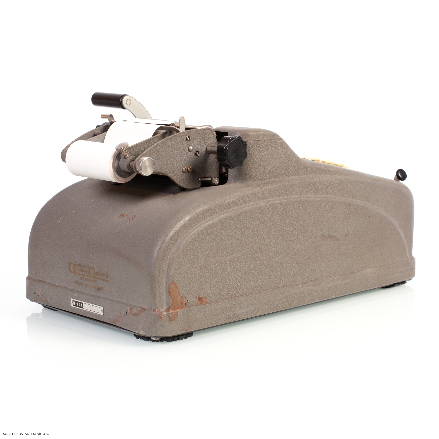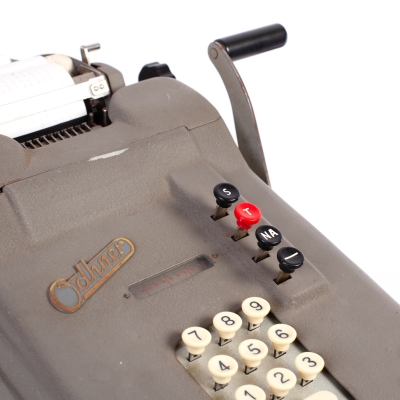 Did you know ...? Aktiebolaget Original-Odhner was established in Göteborg, Sweden, when after the Russian revolution, Odhner's company in St. Petersburg was nationalised and Odhner family moved back to Sweden. In the new Göteborg plant the manufacturing and developing of Odhner's calculator was continued in 1919 with developing new model Arothmos (Mod 1). In 1931 the crank-operated Odhner A was introduced, whose several modifications were produced until the late 1960s. In 1942 Original-Odhner was absorbed by AB Åtvidabergs Industrier, a Swedish office equipment company which also owned the Facit calculator brand and later also the Addo brand. Source: www.rechnerlexikon.de | ||||