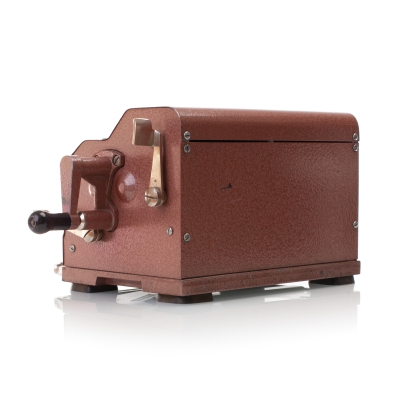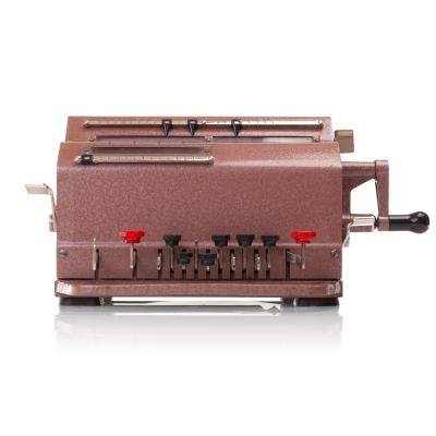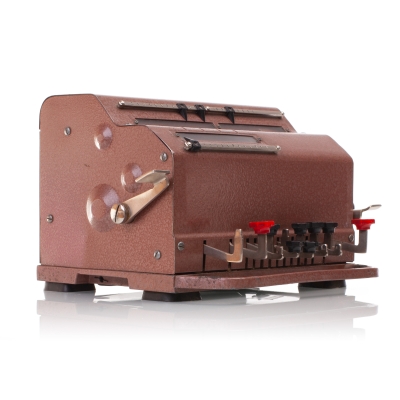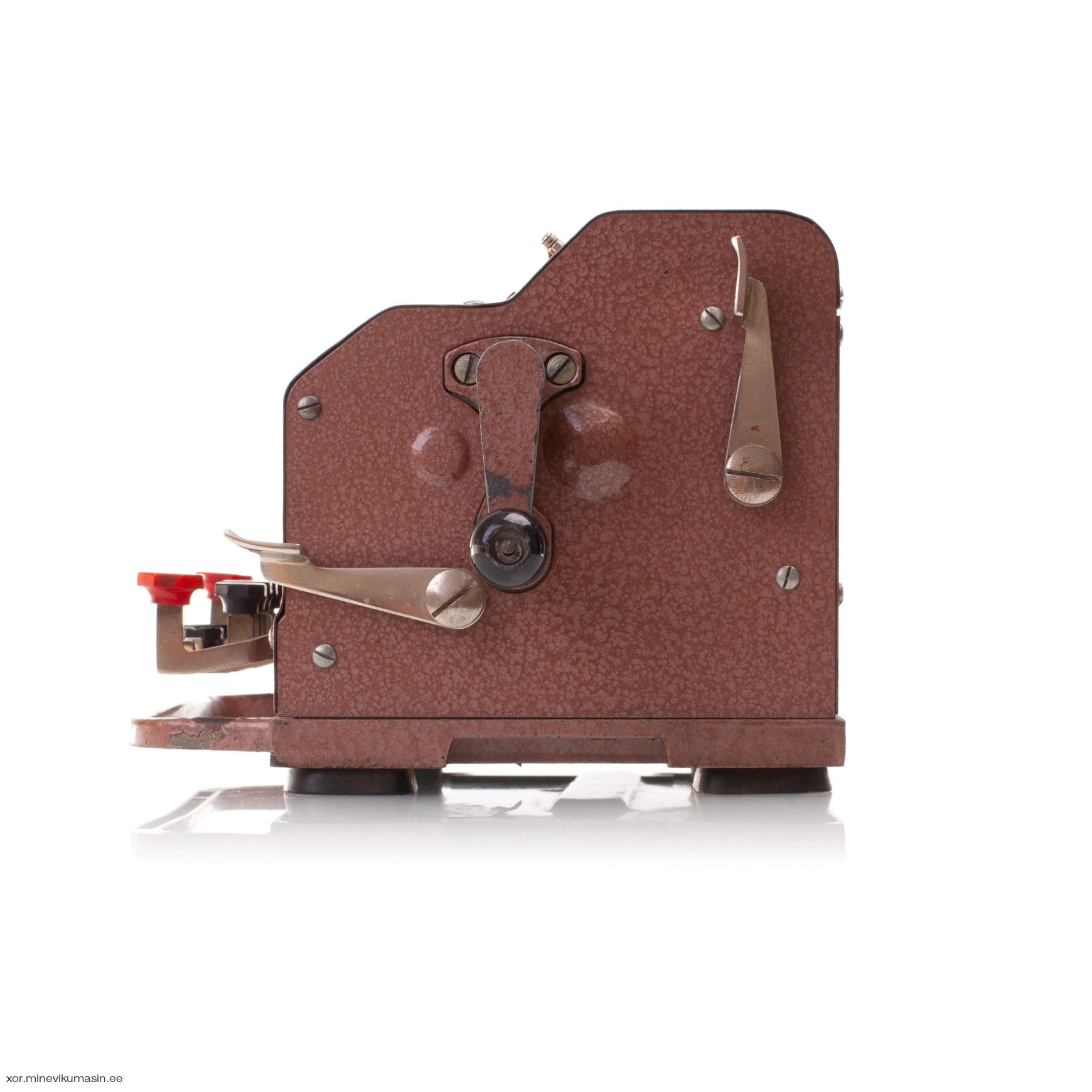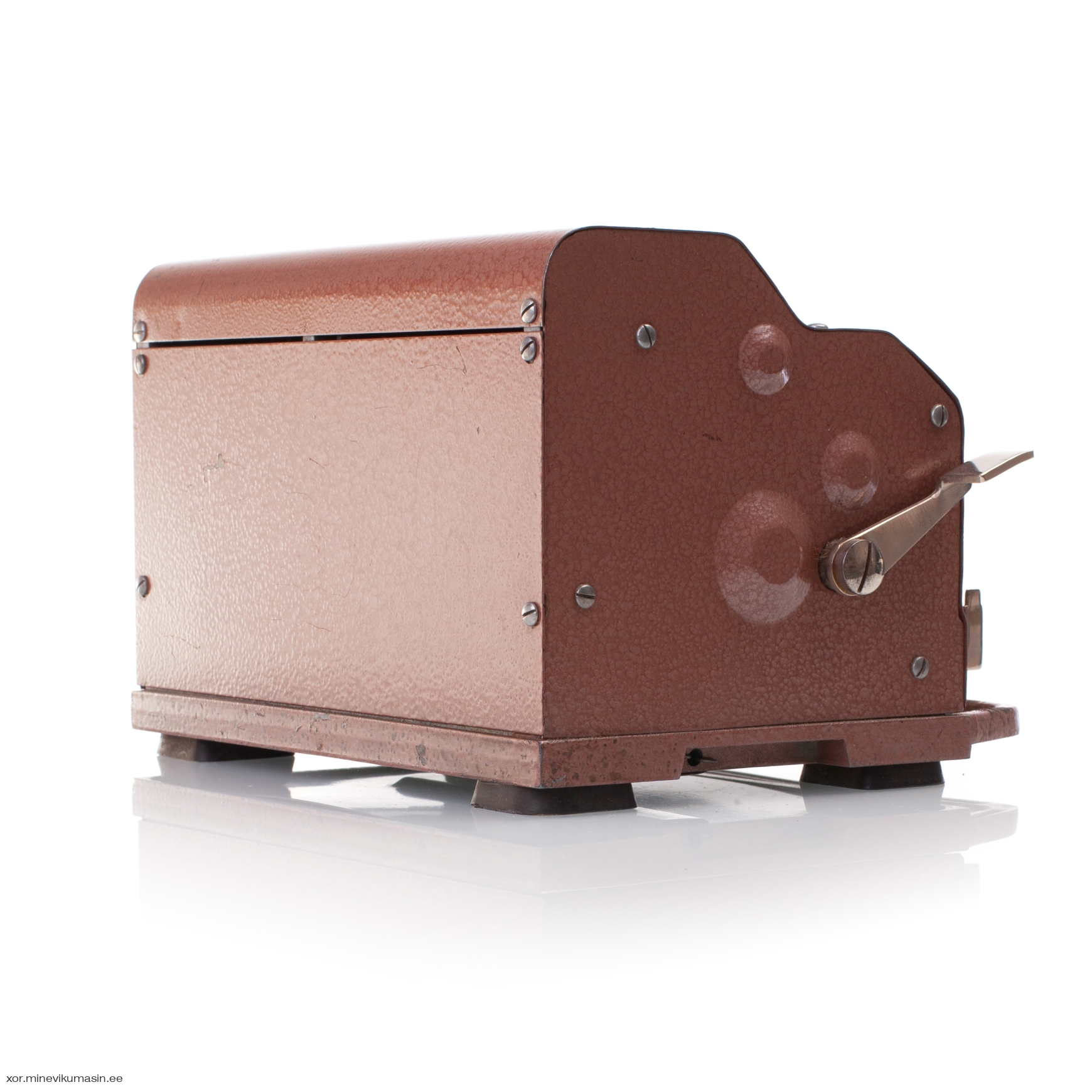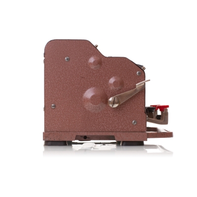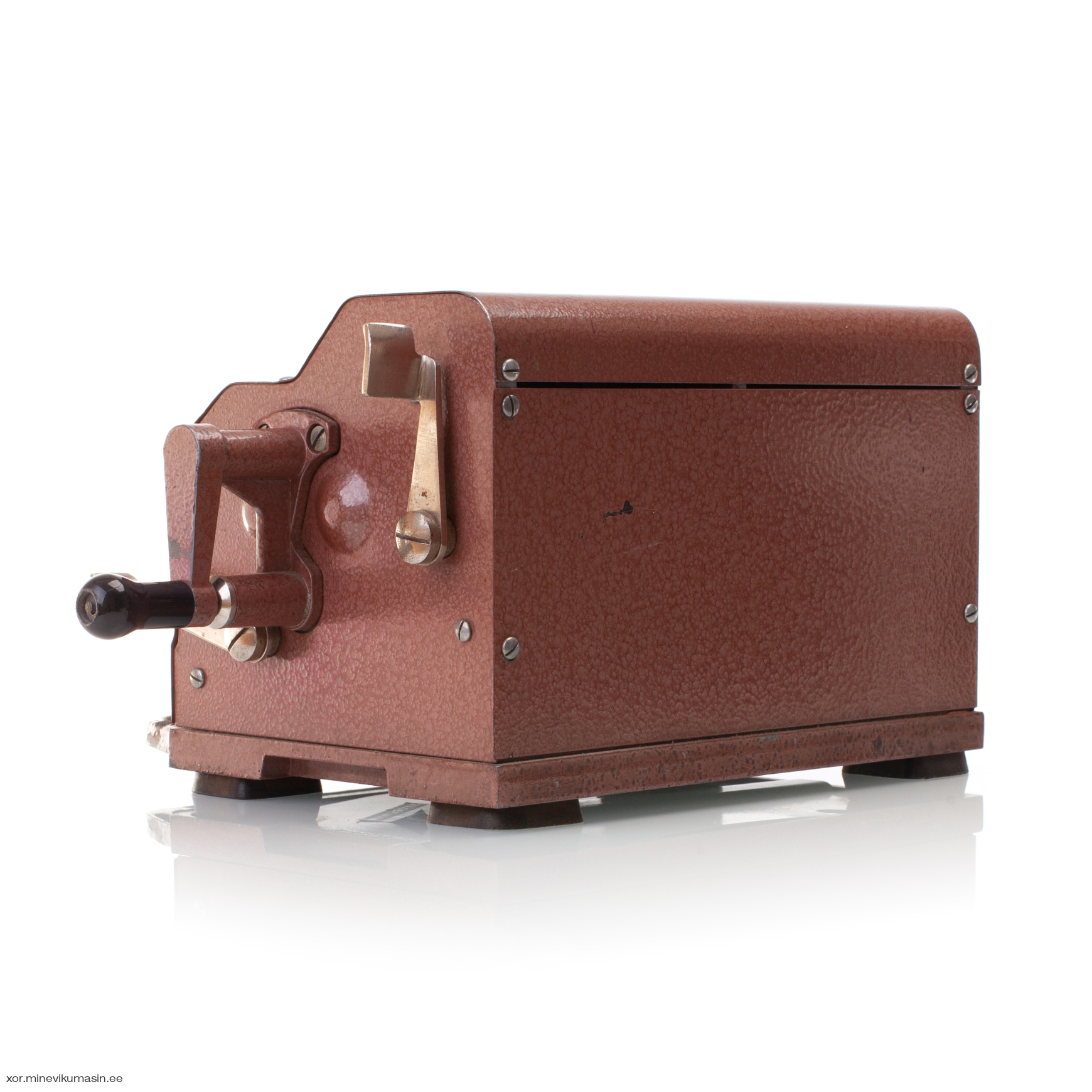 VK-1 is a 10-key (Dalton keyboard) handcrank-operated mechanical calculator. The mechanism is based on an inverted Odhner's pinwheel-type calculator (moving setting register instead of the moving result/revolution carriage). The VK-1 is a clone of Swedish Facit TK (1936-1954); the "Soviet Facit" was manufactured from 1951 to the late 1970s in Schetmash factory. Registers: 9 x 8 x 13 Weight: 5,9 kg. Dimensions: 18 x 30 x 14 cm. Manufactured according to the requirements of the USSR standard GOST 10537-65 | ||||